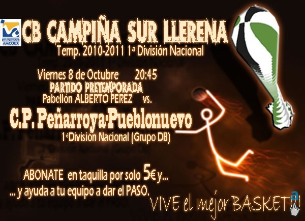PRIMERA TARDE DE BUEN BALONCESTO DE LA TEMPORADA 2010/2011, EL SABADO PUDIMOS VER EL PARTIDO DE PRESENTACION DE NUESTRO PRIMER EQUIPO QUE NOS ENFRETABA A UN DURO RIVAL, AB ALMENDRALEJO. EL PARTIDO FUE UN PARTIDO TIPICO DE PRETEMPORADA UN PELIN FALTO DE INTENSIDAD Y DE RITMO, PERO MUY DISPUTADO HASTA EL ULTIMO MOMENTO DONDE EL CAMPIÑA SE IMPUSO EN UN APRETADO FINAL POR 61-57.