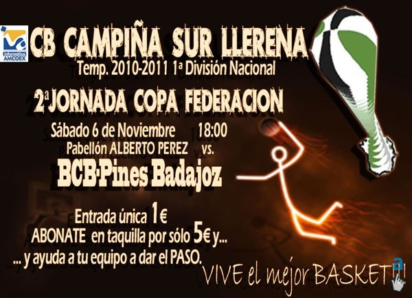 Por fin primer partido oficial del primer equipo del club, después de un mes esperando resoluciones y calendarios y con la jornada de descanso y puente de por medio, comienza la COPA FEDERACIÓN para los nuestros en un partido que nos enfrentará a BCB-Pines Badajoz, pudiendo resultar este definitivo para el objetivo del club que es meterse en semifinales y disputar el título, ya que después de la derrota en casa de los pacenses por 44-64 y debido a que la primera fase solo son 4 partidos una victoria amplia nos dejaría pie y medio en semi finales al igual que una derrota nos dejaría en una situación muy complicada.