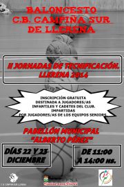 El C.B. CAMPIÑA SUR DE LLERENA, en colaboración con el Excelentísimo Ayuntamiento de Llerena y su Concejalía de Deportes, organiza las II JORNADAS DE TECNIFICACIÓN. Dichas...